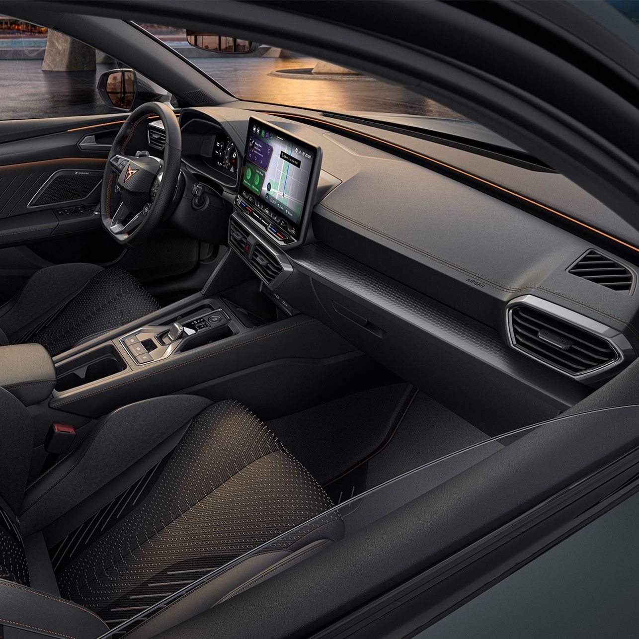 Desfrute de conectividade sem limites com o CUPRA CONNECT através do Sistema de Navegação de 12.9". Desfrute de Mapas online e entretenimento.