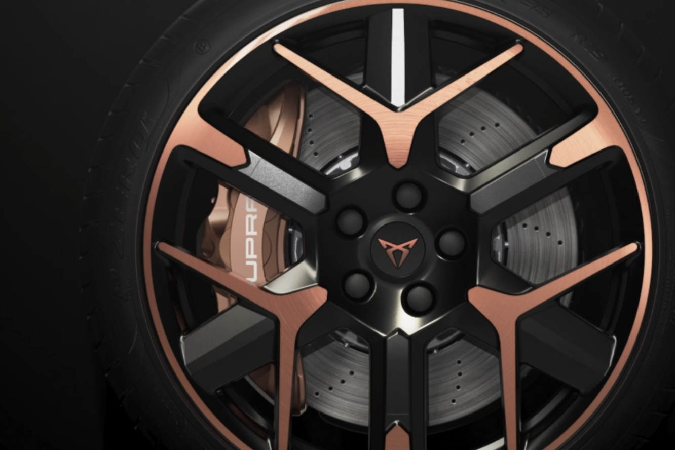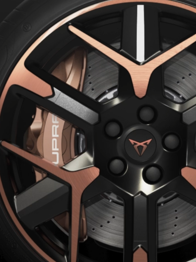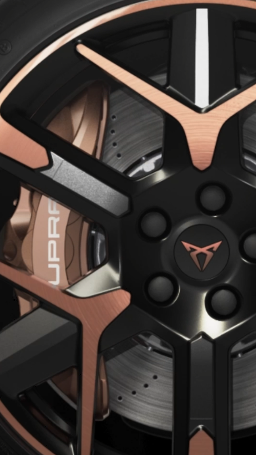 Realçadas com os marcantes tons cobre CUPRA, as jantes em liga leve de 19" são complementadas com travões Brembo de elevada performance.
